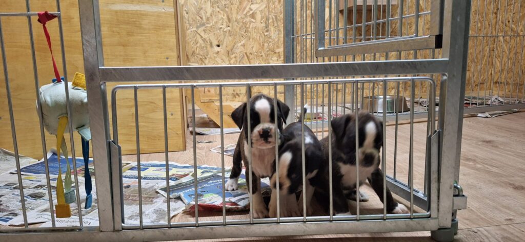 Wir züchten unter allen Auflagen des BoxerKlub e.V. München, der dem VDH und dem FCI angeschlossen ist. Unsere Welpen wachsen inmitten unseres chaotischen Alltags auf – unsere größten Bemühungen laufen darauf hinaus ihnen auch ein wenig (die nötige) Ruhe zu gönnen. Wir versuchen nach bestem Wissen gesunde, wesensstarke und selbstsichere Hunde großzuziehen – aus ihnen werden später die besten Kumpel und Begleiter, die sich der Mensch wünschen kann. Ein heres Ziel, dass für den einzelnen Welpen leider nie garantiert werden kann – wie viel Mühe und Arbeit man auch immer hereinsteckt.